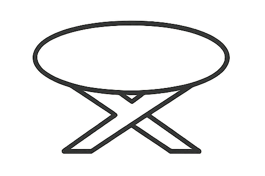Three timber beams intersect at precise angles - a grounded sculpture that anchors the space without weight. A circular glass top rests above, clear and quiet, allowing the joinery and grain beneath to remain visible.